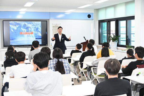 이번 특강에서 김 청장은 미래를 준비하는 청소년 30여 명에게 ‘얼음이 녹으면’이라는 부제로 청소년들의 주체적 삶과 교육 공동체로서의 역할을 강조하며 1시간 동안 이야기를 풀어나갔다.