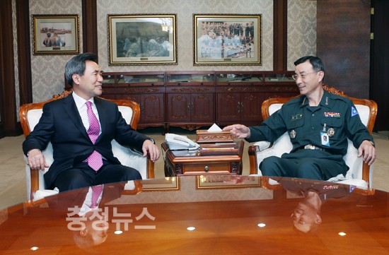 ▲ 지난 8일 계룡대를 찾아 조정환 육군참모총장과의 만남을 가졌다.