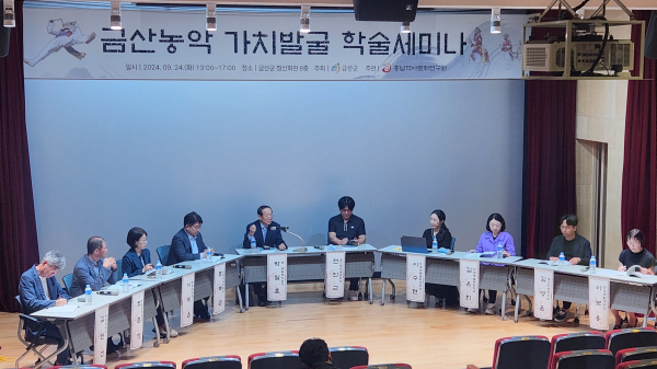 [충청뉴스 금산 = 조홍기 기자] 금산군은 지난 24일 금산읍 청산회관에서 충남역사문화연구원 주관으로 금산농악의 가치를 발굴하기 위한 학술 세미나를 개최했다.