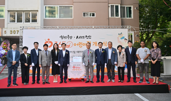 도는 27일 천안 아이행복어린이집에서 김태흠 지사와 천안시장, 어린이집 관계자 등이 참석한 가운데, ‘힘쎈충남 365×24 어린이집’ 1호 개소식을 개최했다.
