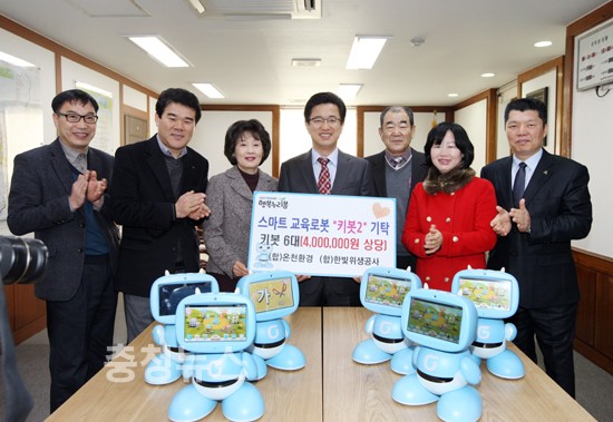 ▲ 유성구 스마트 교육로봇 기탁 15일 오전 유성구청 소회의실에서 스마트 교육로봇 전달식이 열려 (합)온천환경과 (합)한빛위생공사가 기탁한 ‘키봇2’ 6대(400만원 상당)가 유성구 사회복지기관인 유성구종합사회복지관, 송강사회복지관, 유성구장애인복지관에 각각 2대씩 전달됐다. 저작권자 © 충청뉴스 무단전재 및 재배포 금지 문요나 기자 다른기사 보기 기사가 마음에 드셨나요? 충청뉴스 좋은 기사 후원하기 1,000원 3,000원 5,000원 10,000원 30,000원 50,000원 직접입력 비회원 약관동의하기 ※ 소중한 후원금은 더 좋은 기사를 만드는데 쓰겠습니다.
