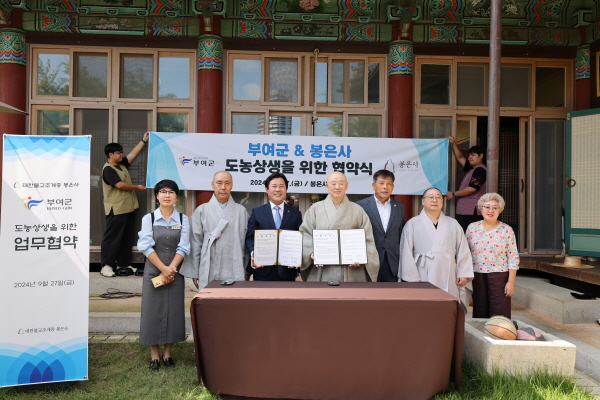 이번 행사에 앞서 지난 9월 27일 봉은사 법왕루에서 도농 상생을 위한 협약식이 진행되었다. 이날 협약식에는 박정현 부여군수, 김영춘 부여군의회 의장과 장소미 산업건설위원장도 함께 했다.