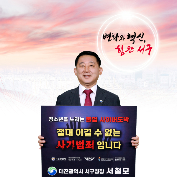 [충청뉴스 박영환 기자] 서철모 서구청장이 청소년 불법 사이버 도박 근절 및 확산 방지를 위한 ‘청소년 도박 근절 릴레이 챌린지’에 동참했다.