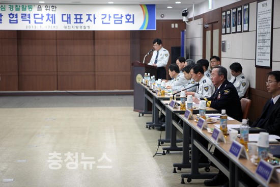 대전지방경찰청(청장 박상용)에서는 17일 오후 4시 대전청 대회의실에서 자율방범대장, 생활안전협의회 위원장 등 5개 협력단체 대표자와 경찰관계자 등 50여명이 참석한 가운데 ‘시민 중심의 경찰활동을 위한 협력단체 대표자 간담회’를 개최하고, 민·경 협력치안 유공자 5명에게 감사장을 수여했다.
