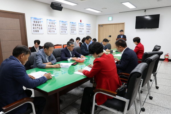 주요 안건으로는 기회감사담당관 ‘교부세 감소 및 통합재정안정화기금 현황’, 투자유치담당관 ‘2025년 충남공동근로복지기금 출연’등 2건, 사회복지과 ‘자활근로사업의 민간(부여지역자활센터) 위탁’, 가족행복과 ‘부여군 노인회관 신축 부지 매입계획’, 전략사업과 ‘부금강권역 정원문화 확산 플랫폼 구축사업’, 환경과 ‘구)세명기업사 폐기물 불법매립사항 추진현황’, 문화체육관광과 ‘백마강 국제 무역항 재현사업’, 문화유산과 ‘백제왕도 핵심유적 보존관리 시행계획(변경) 수립’등 2건, 도시건축과 ‘신대1리 생활여건 취약지역 개조사업’, 농업기술센터 ‘과수화상병 방제’를 포함한 총 12건의 안건을 다뤘다.