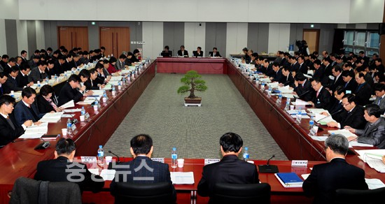 충청남도(지사 안희정)는 22일 도청 대회의실에서 안희정 지사와 실·국·원·본부장 등 160여명이 참석한 가운데 2013년도 주요업무계획 보고회를 갖고, 올해 역점 추진과제를 논의했다.