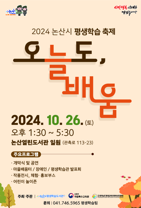 [충청뉴스 논산 = 조홍기 기자] 시민과 함께하는 평생학습 대축제가 오는 26일 논산 열린도서관 일원에서 열린다.