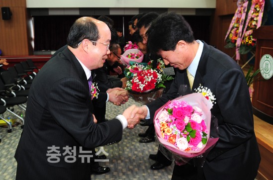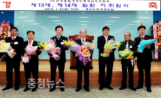한국농업경영인 충남도연합회 제13대 임원 이임식과 14대 임원 취임식이 25일 도청 대회의실에서 열렸다.