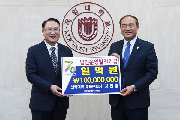[충청뉴스 이성현 기자] 학교법인 감리교학원은 목원대학교 신학대학 총동문회(회장 강판중)로부터 법인운영발전기금 1억원을 전달받았다고 29일 밝혔다.
