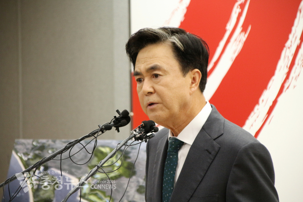 김태흠 지사는 29일 오후 도청 프레스센터에서 기자회견을 열고 민선8기 힘쎈충남과 중앙정부가 함께하는 새로운 사업 계획을 꺼내 들며 임기 내 착공을 약속했다.