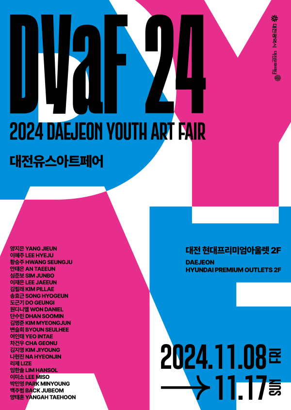 [충청뉴스 박영환 기자] 대전문화재단(대표이사 백춘희)은 ‘대전유스아트페어(DYAF 24)’를 오는 11월 8일부터 11월 17일까지 현대프리미엄아울렛 대전점에서 개최한다고 전했다.