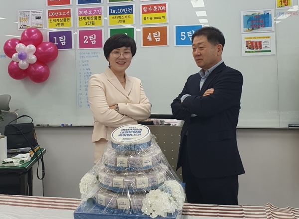 만년지점 대형분할식, 좌로부터 이미정 지점장, 김성흠 FC
