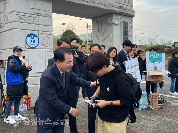 김지철 교육감은 시험장에 들어서는 수험생 한 명 한 명에게 눈을 맞추며 따뜻한 응원의 말을 건넸다. 김 교육감은 “이번 수험생들은 대입 정책 변화와 학창 시절 겪었던 코로나19라는 어려운 상황 속에서도 각자의 목표를 가지고 묵묵히 준비해왔다”며 “오늘의 시험이 그동안의 노력을 결실로 맺는 날이 되길 바란다”고 응원의 뜻을 전했다.