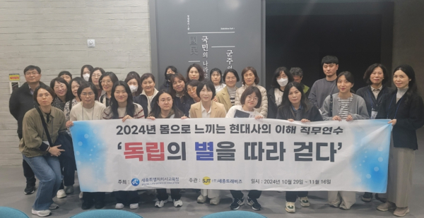 [충청뉴스 최형순 기자] 세종특별자치시교육청교육원(원장 우태제)은 세종시 관내 교원 30명을 대상으로 10월 29일부터 11월 16일까지 세종교육원과 서울 일원에서 ‘2024 몸으로 느끼는 현대사의 이해 직무연수’를 실시했다.