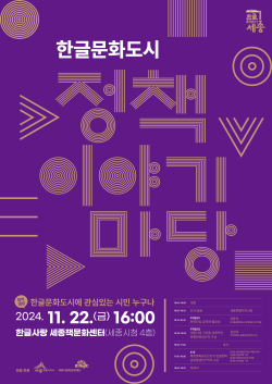 [충청뉴스 최형순 기자] 세종시와 세종시문화관광재단은 오는 22일 오후 4시 세종책문화센터에서 ‘한글문화도시 정책 이야기마당’을 개최한다.