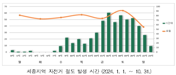 하지만, 주로 청소년들이 이용하는 자전거 절도가 전국적으로는 절도의 6.6%를 차지하고 있는데, 세종에서는 21%나 차지하고 있어 이에 대한 대책이 요구되었다.