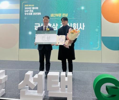 [충청뉴스 금산 = 조홍기 기자] 금산군 부리면 소재 ㈜금흑(대표 고태훈)이 지난 22일 서울시 강남구 코엑스몰에서 열린 제10회 농산물우수관리(GAP) 우수사례 경진대회에서 은상을 수상했다.