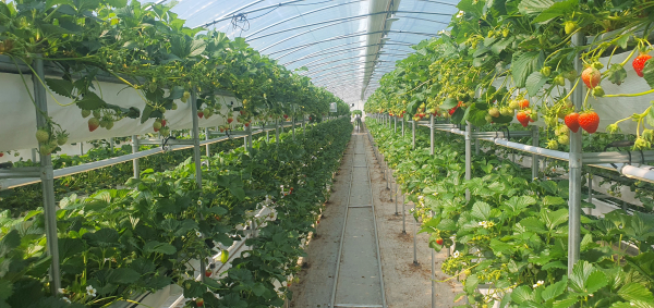 47개의 딸기관련 기업을 유치하기 위해 노력한 것은 물론 올해 전체 딸기재배면적 1,023ha 중 68%에 해당하는 700ha를 고설 수경재배 시설로 전환하도록 지원하고, 농업기술센터에서 연구개발한 재배기술 매뉴얼을 현장에 보급하여 생산성 제고, 노동력 절감 및 고품질화를 도모했다.