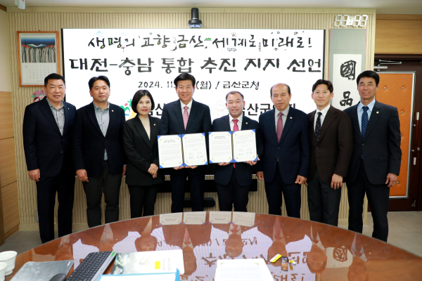 아울러 금산군과 금산군의회는 충남도와 대전시의 행정구역 통합 추진을 적극 환영하며 그 성공적인 실현을 위해 협력할 것을 다짐했다.