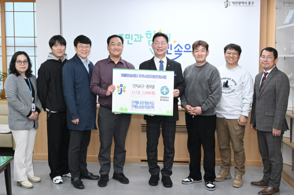 이날 기탁식에는 김제선 중구청장, 김석환 중구의원, 김태호 은행동상점가상인회 회장이 참석했으며 기탁 물품은 관내 치매환자 및 보호자에게 전달될 예정이다.