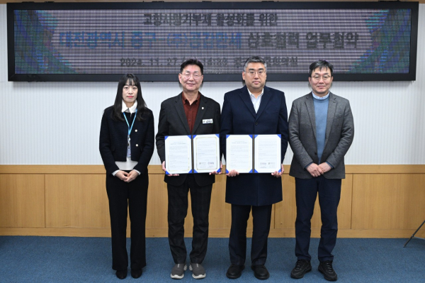 [충청뉴스 박영환 기자] 대전 중구는 지난 27일 고향사랑기부제 민간플랫폼 ‘위기브’를 운영하는 사회적기업 ㈜공감만세(대표이사 고두환)와 고향사랑기부제 홍보 업무협약을 체결했다고 밝혔다.