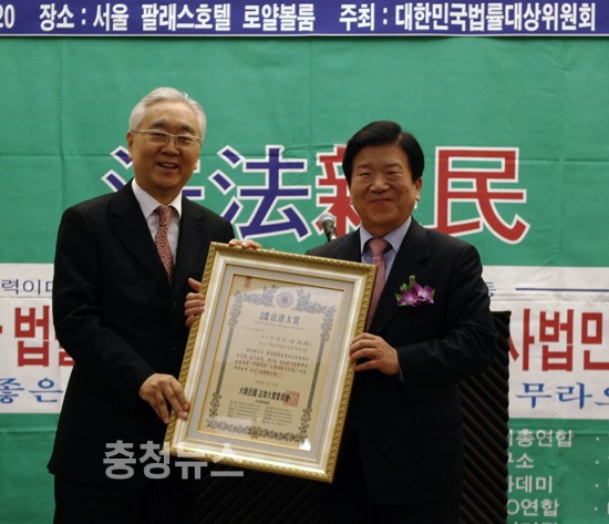 법률소비자연맹(총재 김대인)이 선정하는 대한민국 법률대상은 입법, 사법, 학술 등의 분야에서 법치민주주의와 법률문화 발전에 공적이 뛰어난 리더들을 찾아서 전 국민의 사표(師表)로 삼기위해 지난 2003년에 제정됐으며, 박 부의장은 이번 5회 법률대상에서 ‘입법부문’ 수상자로 선정됐다.