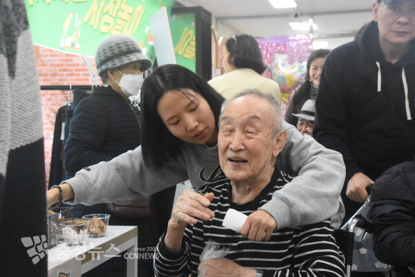 이날 어르신들은 직접 마음에 드는 옷을 구경하며 쇼핑의 재미를 느꼈고 페이스페인팅과 네일아트, 교복을 입고 찍는 옛날사진관을 통해 추억 속으로 빠져들었다.
