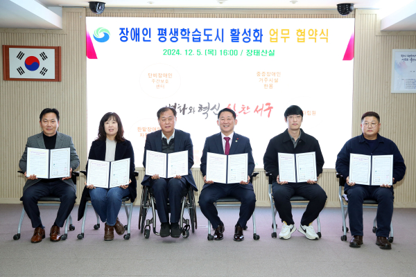 [충청뉴스 박영환 기자] 대전 서구는 관내 장애인 평생학습 5개 기관과 장애인 평생학습 활성화를 위한 협약을 체결했다고 지난 6일 밝혔다.