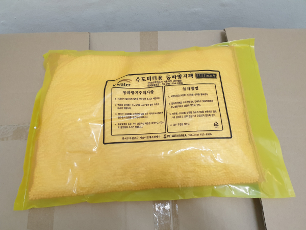 동파방지팩은 스티로폼 조각과 방습제를 비닐팩에 담아 밀봉했다. 수도계량기 위에 덮고 뚜껑을 닫기만 하면 되며, 스티로폼 알갱이들이 공기 흐름을 차단해 수도계량기 동파를 막는다.