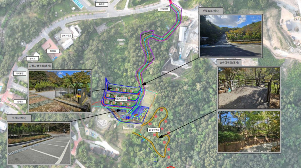 현재 진행 중인 숲속 야영장 조성공사는 자동차야영장 12면과 야외 데크 10면, 세면실, 화장실, 산책로, 벤치 등의 이용객 편의시설로 구성돼 있다.