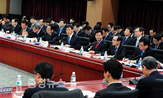 도는 26일 도청 대회의실에서 확대간부회의를 개최하고, 2014년 정부예산 확보 전략을 논의했다.