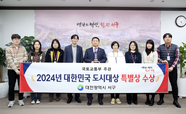 [충청뉴스 박영환 기자] 대전 서구는 국토교통부 주관 '2024년 대한민국 도시대상'에서 지원체계 부문 특별상을 수상했다고 전했다.