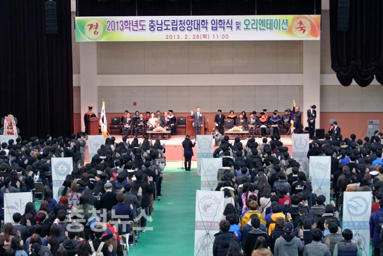 충남도립청양대학(총장 최석충)은 28일 구본충 행정부지사 등 800여명이 참석한 가운데 2013학년도 입학식을 개최했다. 입학식은 입학허가 선언과 신입생 선서, 장학증서 수여, 식사 및 치사 등의 순으로 진행됐다.