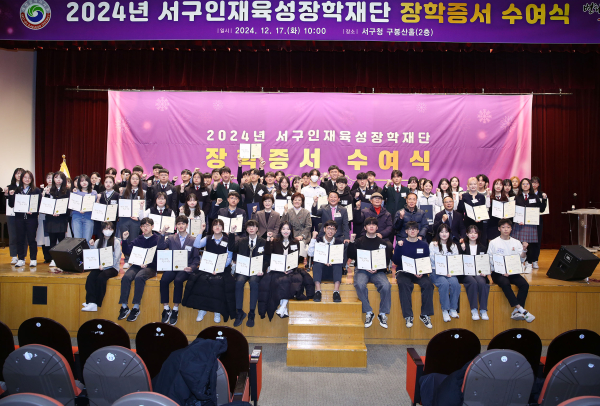 서철모 이사장은 “오늘 이 자리에 있는 청소년, 청년들이야말로 지역발전의 초석”이라며 “앞으로도 서구와 장학재단에서는 지역의 인재가 자신의 꿈을 펼칠 수 있도록 최대한 지원하겠다”라고 말했다.