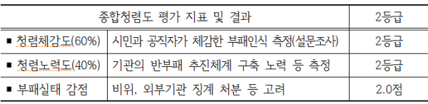 청렴도 2등급 유지…청렴노력도 상승으로 실질적 최우수 등급