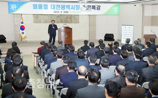 염홍철 대전시장은 5일 오전 9시 중구 선화동 농협중앙회대전지역본부 대강당에서 농협조합장 및 지점장, 임직원 등 300여명이 참석한 가운데 특강을 실시했다.