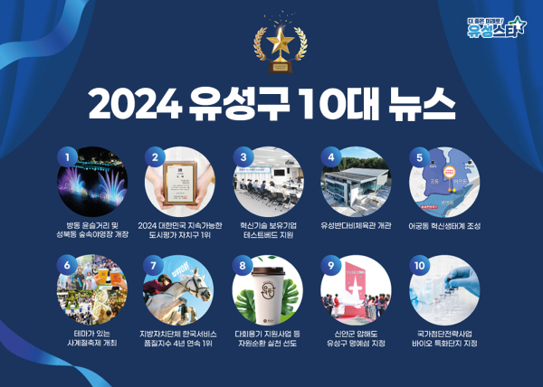 [충청뉴스 박영환 기자] 대전 유성구가 2024년 주요 사업 및 성과 20개 후보를 대상으로 유성구 10대 뉴스를 선정·발표했다.