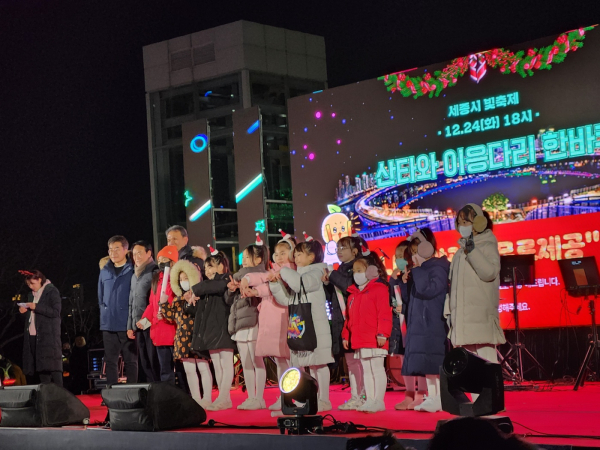24일 크리스마스 이브 특별행사는 최민호 세종시장과 최교진 세종시교육감이 산타할아버지 복장으로 이응다리를 한바퀴 걷는 이벤트를 펼쳤다.