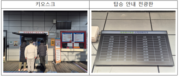 새로 도입 된 키오스크를 이용하면 현장 대기 없이 표를 살 수 있을 뿐만 아니라, 탑승 가능한 시간정보까지 상세히 제공되어 탑승시간을 선택 할 수 있고, 탑승 안내 전광판을 통해서는 탑승 시간 및 바이크 수를 실시간으로 확인도 할 수 있어 관광을 즐기다가 시간에 맞춰 탑승 할 수 있도록 한 것이다.