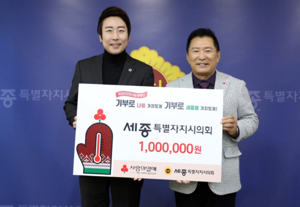 [충청뉴스 최형순 기자] 세종특별자치시의회(의장 임채성)는 27일 의장 집무실에서 세종사회복지공동모금회에 성금을 기탁하는 ‘희망 2025 나눔 캠페인’ 성금 전달 행사를 실시했다.