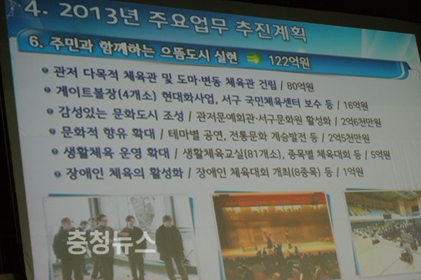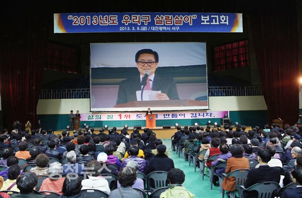 8일 오후 서구 도솔체육관에서 ‘2013년 우리구 살림살이’ 보고회는 염홍철 시장을 비롯한 박병석 국회부의장, 박범계 국회의원과 시구의원이 참석한 가운데 열렸다.