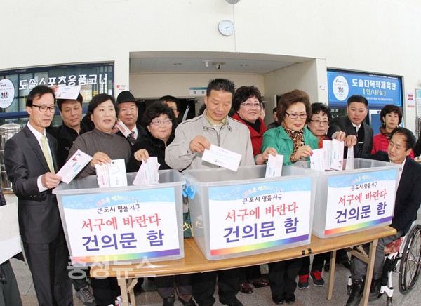 이에 앞서 염홍철 시장은 축사에서 “직장이 서구에 있기 때문에 패널티를 받을까봐 빨리 왔다 서구가 대전의 중심이다 지리적으로도 중심 시청을 비롯해서 도시의 인프라가 잘 갖춰져 있다. “환경과 공원녹지는 최고를 자랑한다. “장태산이나 구봉산. 넓고 시설이 잘된 한밭 수목원. 문화예술을 비롯한 44개 중 40개가 전국 최상위에 들어갈 정도의 높은 도시”라고 칭송했다.