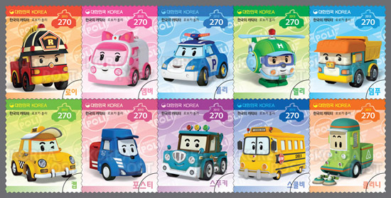스티커우표로 발행되는 이번 우표는 애니메이션 ‘로보카 폴리’와 그 친구들이 10종의 우표로 소개되며, 총 200만장이 발행된다.