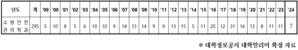 실제 충남도립대학교 소방안전관리학과는 1998년 개교 이후 1999년 5명을 시작으로 매년 10명 내외의 소방공무원을 배출했다.