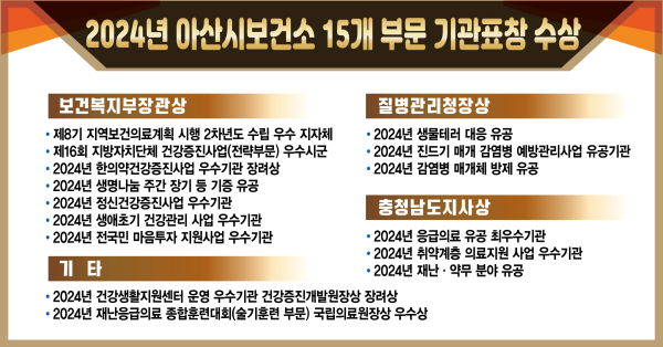 2024년 아산시보건소 15개 부문 기관표창 수상 목록