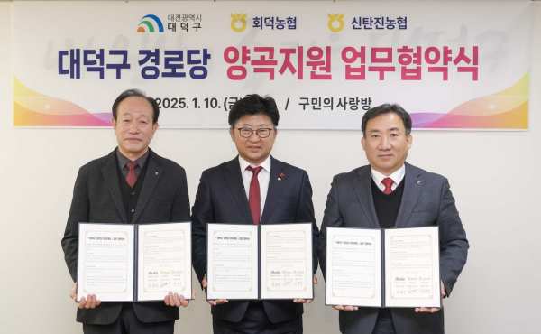 대덕구와 회덕농협, 신탄진농협은 이번 협약을 통해 △경로당 양곡지원 사업 상호협력 △양질의 경로당 양곡 지원 △상호 다양한 활동과 발전 방안 모색 등을 추진하기로 했다.