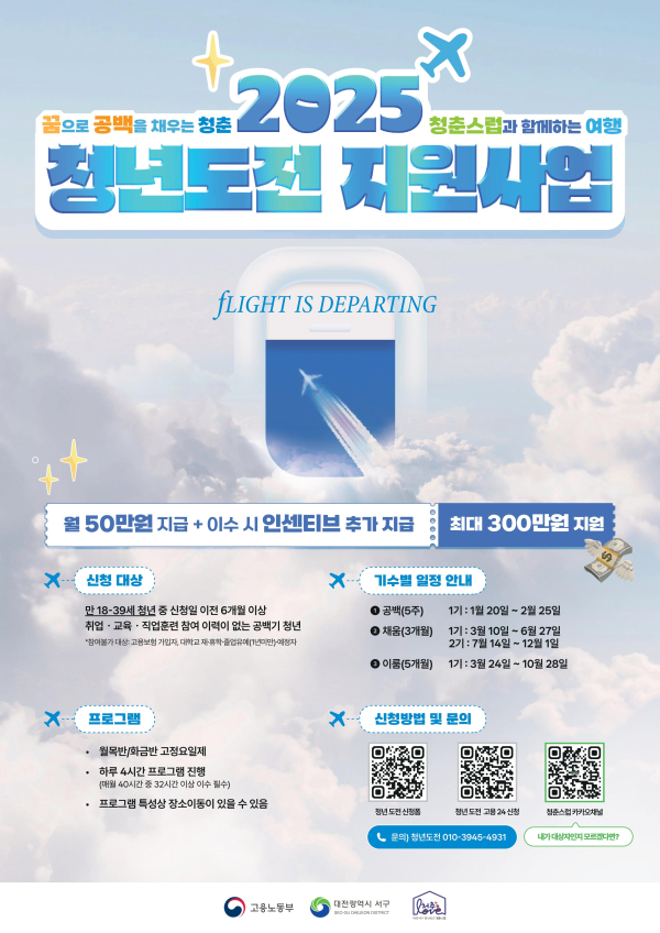 [충청뉴스 박영환 기자] 대전 서구(구청장 서철모)는 공백기 청년을 대상으로 원활한 사회활동 및 사회진입 지원을 위해 2025년 청년도전지원사업 참여자를 모집한다고 밝혔다.