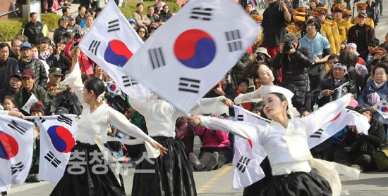 이 밖에 행사장을 찾은 많은 시민들은 곳곳에 걸린 다양한 크기의 태극기와 하상도로변에 설치된 태극기 조형물을 배경으로 사진을 찍는 등 3.16 재연행사를 즐겼다.