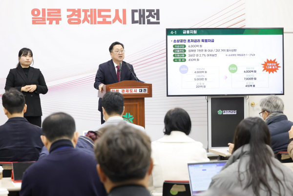 지난해 처음 시행한 ‘대전형 소상공인 초저금리 특별자금’의 규모를 4,000억 원에서 올해 6,000억 원으로 늘린다. 업체당 대출한도도 5,000만 원에서 7,000만 원으로 상향하며, 연 2.7% 이자를 2년간 지원한다.
