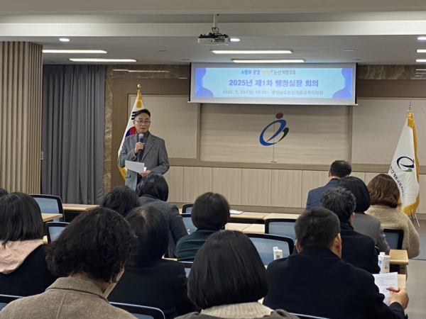 [충청뉴스 논산 = 조홍기 기자] 논산계룡교육지원청은 20일 제1회의실에서 관내 유,초,중,고,특수학교 행정실장 67명을 대상으로 제1차 행정실장 연수를 실시했다.